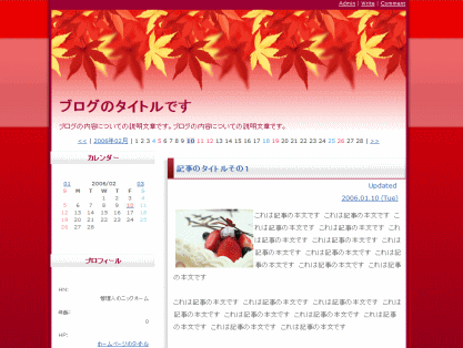 まったりと季節感を感じるテンプレートを作っています。初めて忍者ブログでテンプレートを作成しているので不具合があるかもしれませんが、遠慮なくフォームやコメントなどでお問い合わせ頂けたら幸いです♪